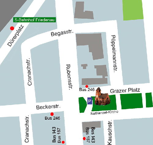Sie finden die Ausstellungen in der Nathanael-Kirche, Grazer Platz, 12157 Berlin: